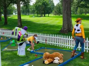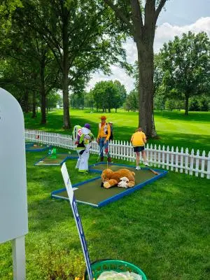 We have a 9 hole golf course that we set up at the Kaulig Championship Golf Outing each year. We give children of all ages a golfing experience when they come out to this event.