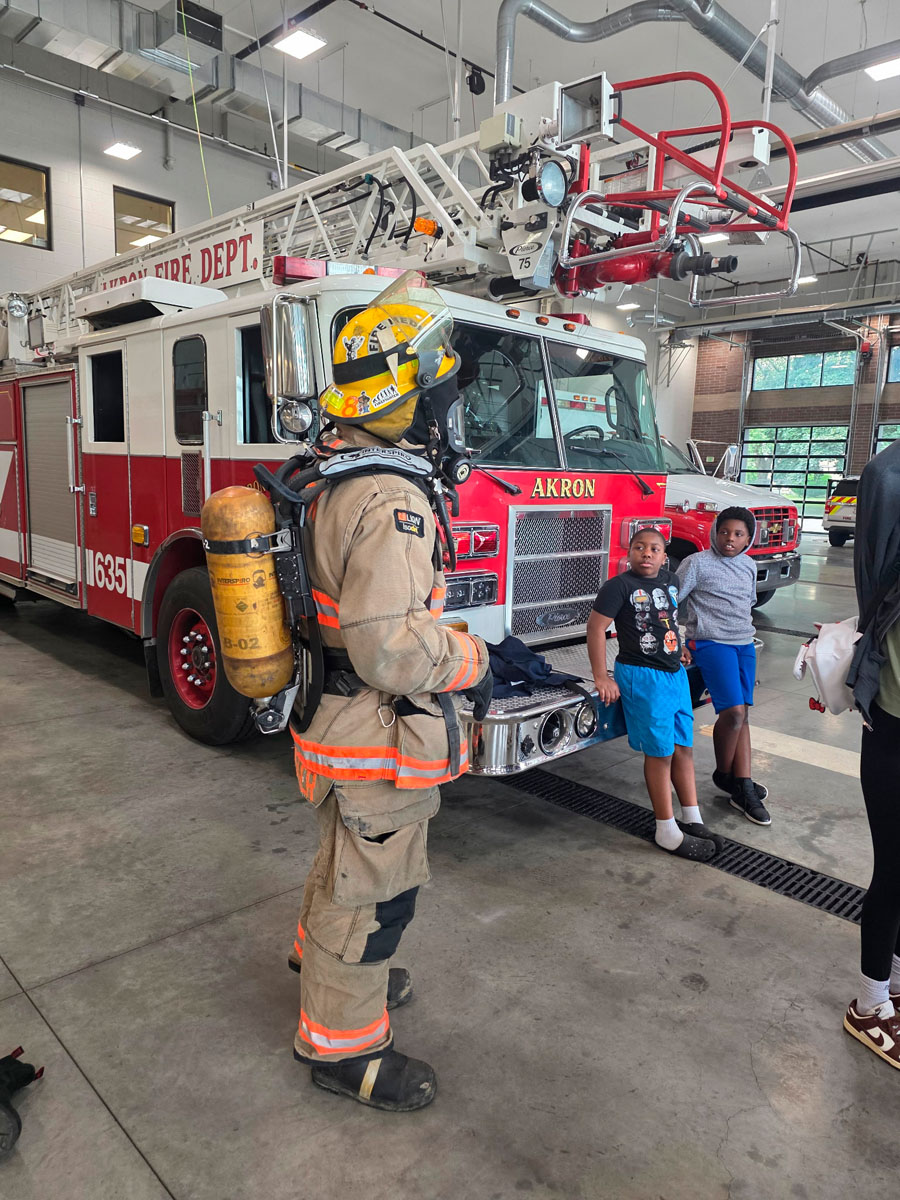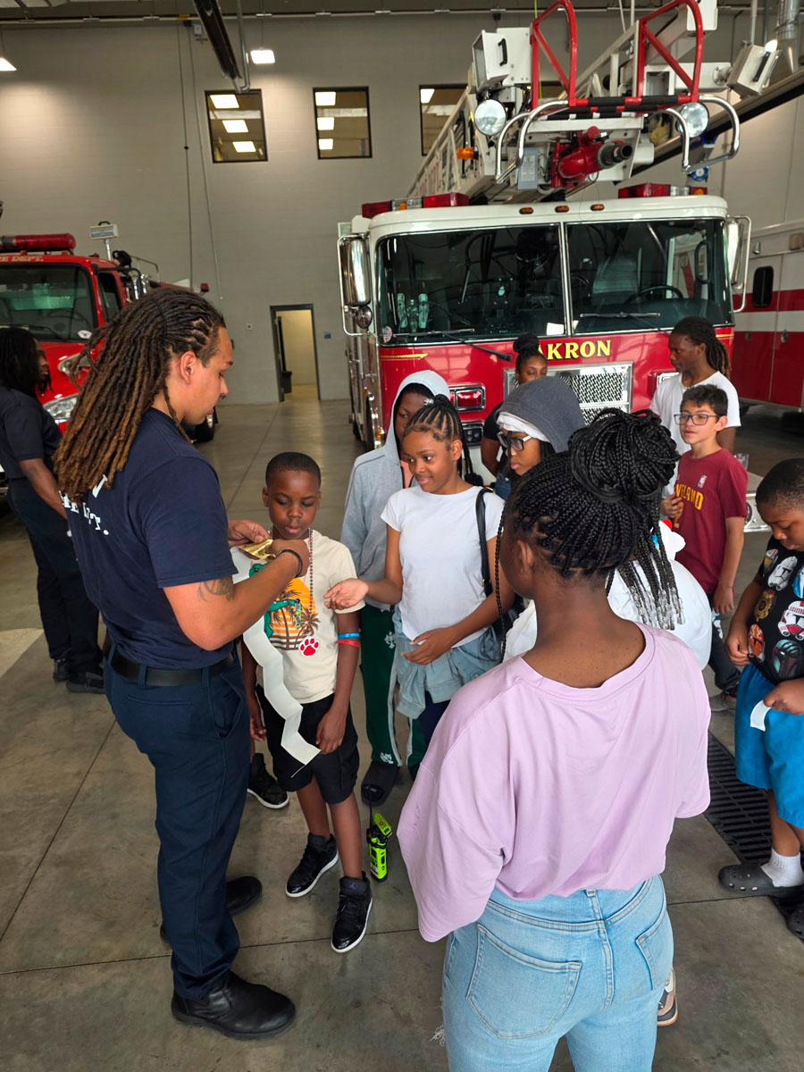 Kiwanis of Akron with the Boys and Girls Club at the Akron Fire Department